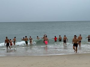 A praia do Furadouro, no concelho de Ovar, recebeu esta manhã o tradicional primeiro banho do ano, uma iniciativa organizada pelo AFIS/Ovar, que voltou a juntar dezenas de participantes e curiosos junto à linha do mar.